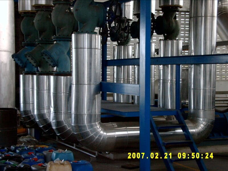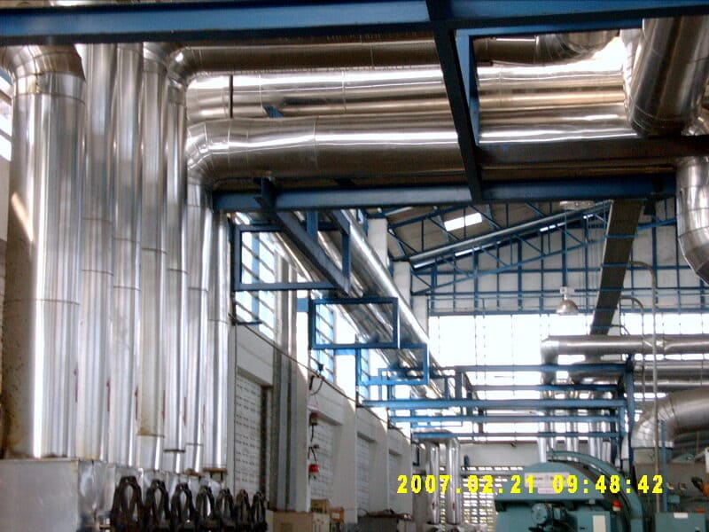 งานหุ้มฉนวนกันความร้อน โรงงาน งานหุ้มฉนวน Insulation Work รับออกแบบ ติดตั้ง และแก้ไข งานหุ้มฉนวนกันความร้อน งานหุ้มแจ็กเก็ต งานหุ้มฉนวนกันความร้อน งานระบบระบายอากาศ พัดลมระบายอากาศ ห้างหุ้นส่วนจำกัด ดี. อี. วิศวกรรมและการพานิช รับงานออกแบบและติดตั้ง งานระบบระบายอากาศ เช่น คุณภาพอากาศ ลดความร้อน, ฝุ่น, กลิ่น, ควัน, อื่นๆ และงานหุ้มฉนวนกันความร้อน เย็น เช่น ท่อน้ำร้อน,ท่อสตีม,ท่อน้ำมันร้อน,ถังเก็บความร้อน,อื่นๆ,ท่อน้ำเย็น,ท่อไอเย็น,ถังเก็บความเย็น,อื่นๆ โดยทีมงานวิศวกรที่มีความรู้ความชำนาญ มากกว่า 20 ปี- งานหุ้มฉนวนท่อน้ำร้อน (Steam Insulation)